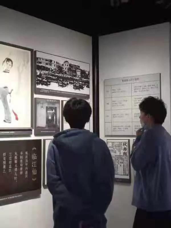 在参观过程中,同学们先后浏览了秋瑾的私塾、书房、卧室等生活场所以及秋瑾烈士文物陈列馆。在陈列馆中,以三个部分陈述了秋瑾的生平和她做出的伟大贡献。第一部分:“仕宦名门女,觉醒拯危国”秋瑾从小学诗词、骑马、击剑,后又广读新潮书报,从而萌发了民主思想和妇女解放思想。第二部分:“一心挽乾坤,慷慨成英烈”瑾赴日留学,结识革命志士,成为同盟会浙江分会主盟人,执教浔溪女学,创《中国女报》,与徐锡麟约定浙皖同起义,败后就义。第三部分:“侠义铸英魂,丹心照汗青”秋瑾的事迹感染者每一代人,烈士精神永世长存。